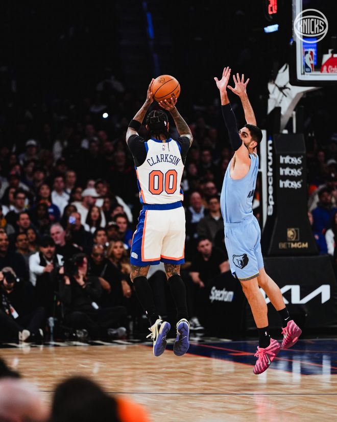 尼克斯队的布伦森得到32分、5个篮板和10次助攻,布里奇斯得到22分、7个篮板和5次助攻,唐斯得到21分、13个篮板和4次助攻,阿奴诺比得到16分和4个篮板,克拉克森得到13分,沙梅特得到10分。灰熊队的杰克逊得到19分和6个篮板,阿尔达马得到19分和7个篮板,威尔斯得到18分,莫兰特得到16分、3个篮板和10次助攻,威廉姆斯得到14分、9个篮板和6次助攻,斯宾塞和科沃德各得到11分。