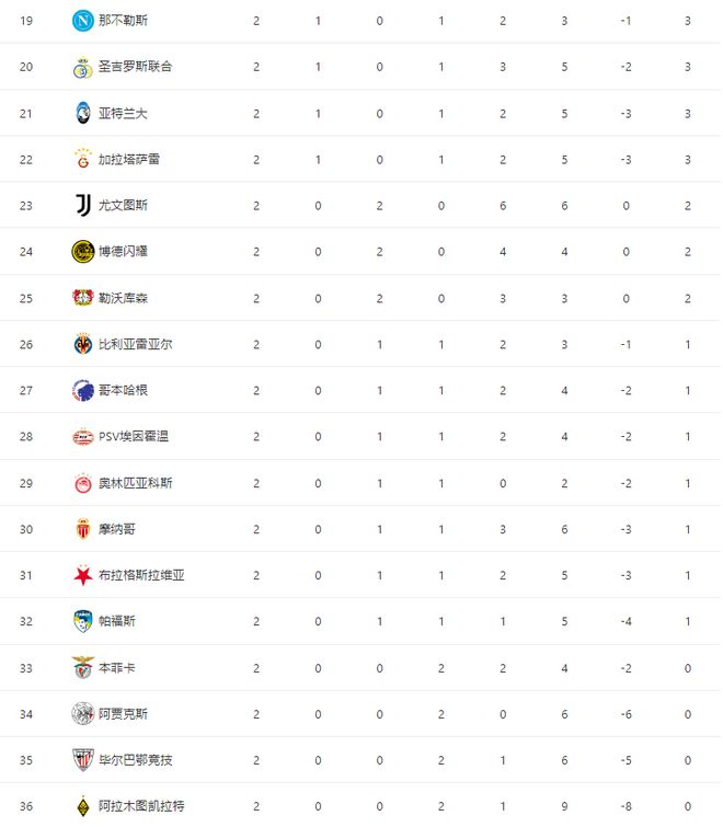 第二轮全部结束之后,最新积分榜排名: