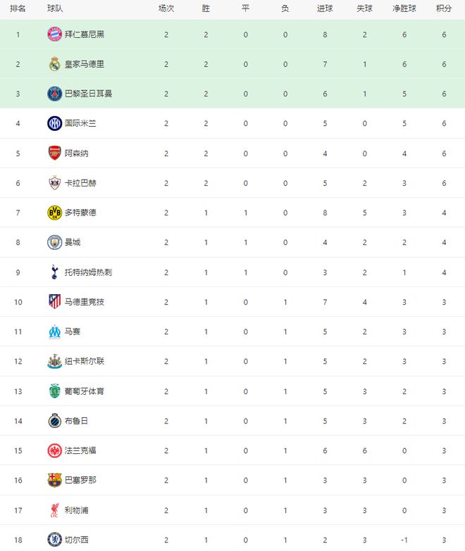 随着巴黎2-1绝杀巴萨,曼城2-2遭绝平,欧冠最新积分榜:拜仁领跑